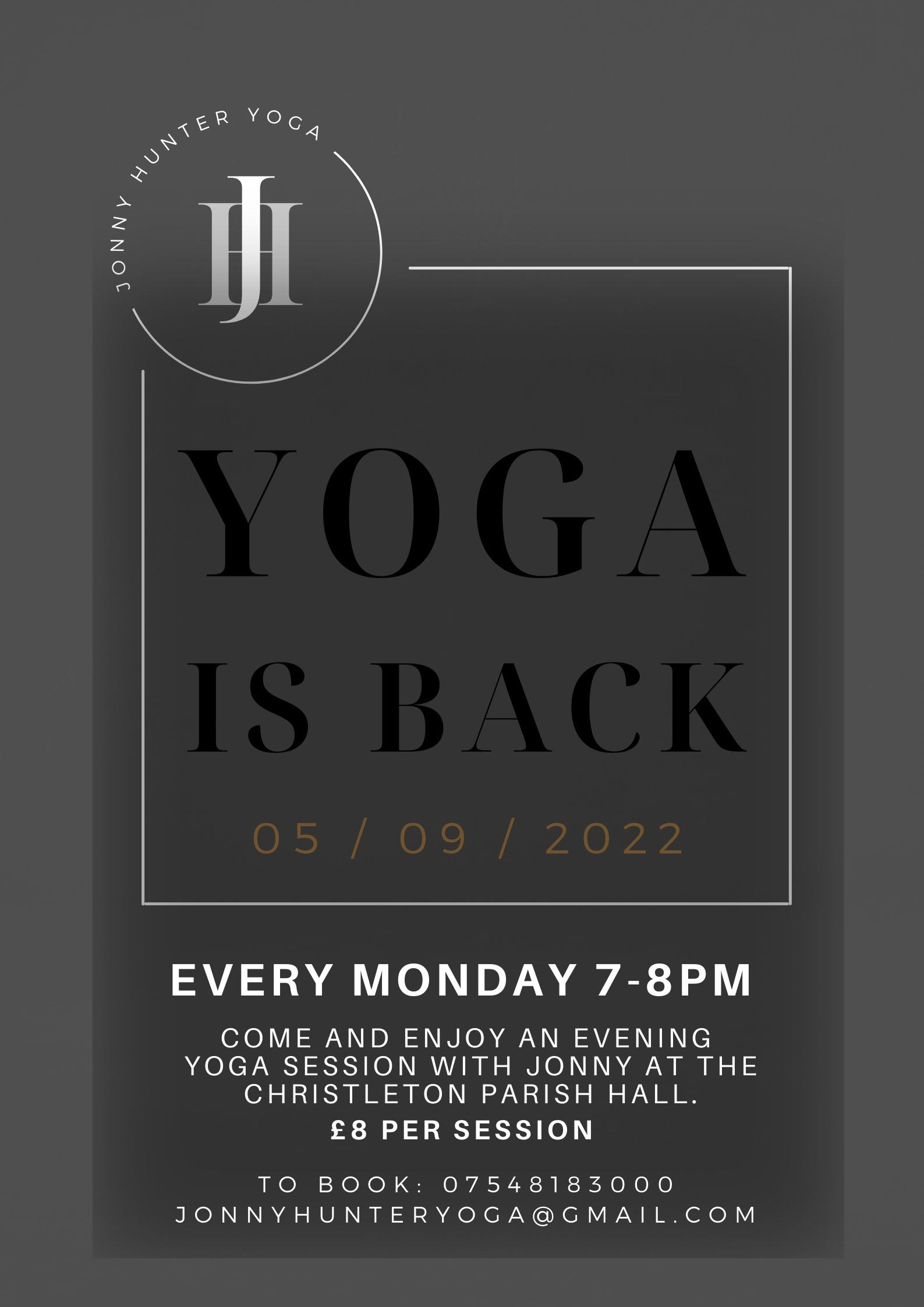 BRAND BOARD FOR JONNY HUNTER YOGA, WITH LOGO DESIGN, CURATED FONT COLLECTION, COLOUR SCHEME AND DYNAMIC IMAGERY